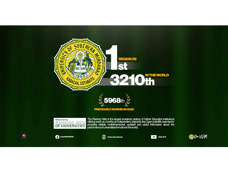 The University of Southern Mindanao (USM) continues to hold its place as the Number 1 university in the region, based on the latest Webometrics rankings. USM also […]