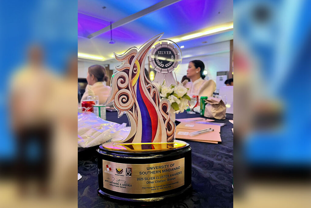 The University of Southern Mindanao, received the silver cluster award and bronze as other citation from Innovation and Technology Support Office (ITSO) for its excellence in promoting innovation, improving Intellectual Property systems, and delivering impactful technology transfer during the Presidents’ Summit and General Assembly 2026 on March 25–26 at Diversion 21 Hotel, Iloilo City.